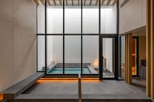 施設内には木が茂り、自然の採光が注ぐ、水風呂、サウナを備えた大浴場です。水は心身の健康を健やかに保つ上でとても大切な要素であり、身体を伸ばしてお湯につかることで、カラダのコンディションを整えるサポートとなります。スポーツやアクティビティの後など、一日の疲れを癒し、滞在をより快適に!