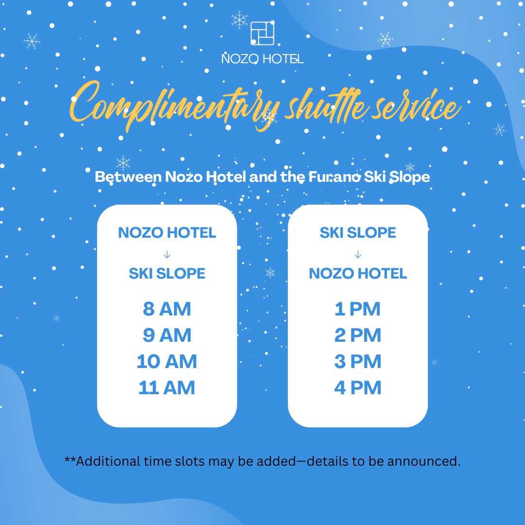 Starting December 8th! Free Shuttle Service Between NOZO Hotel ⇄ Furano Ski Resort