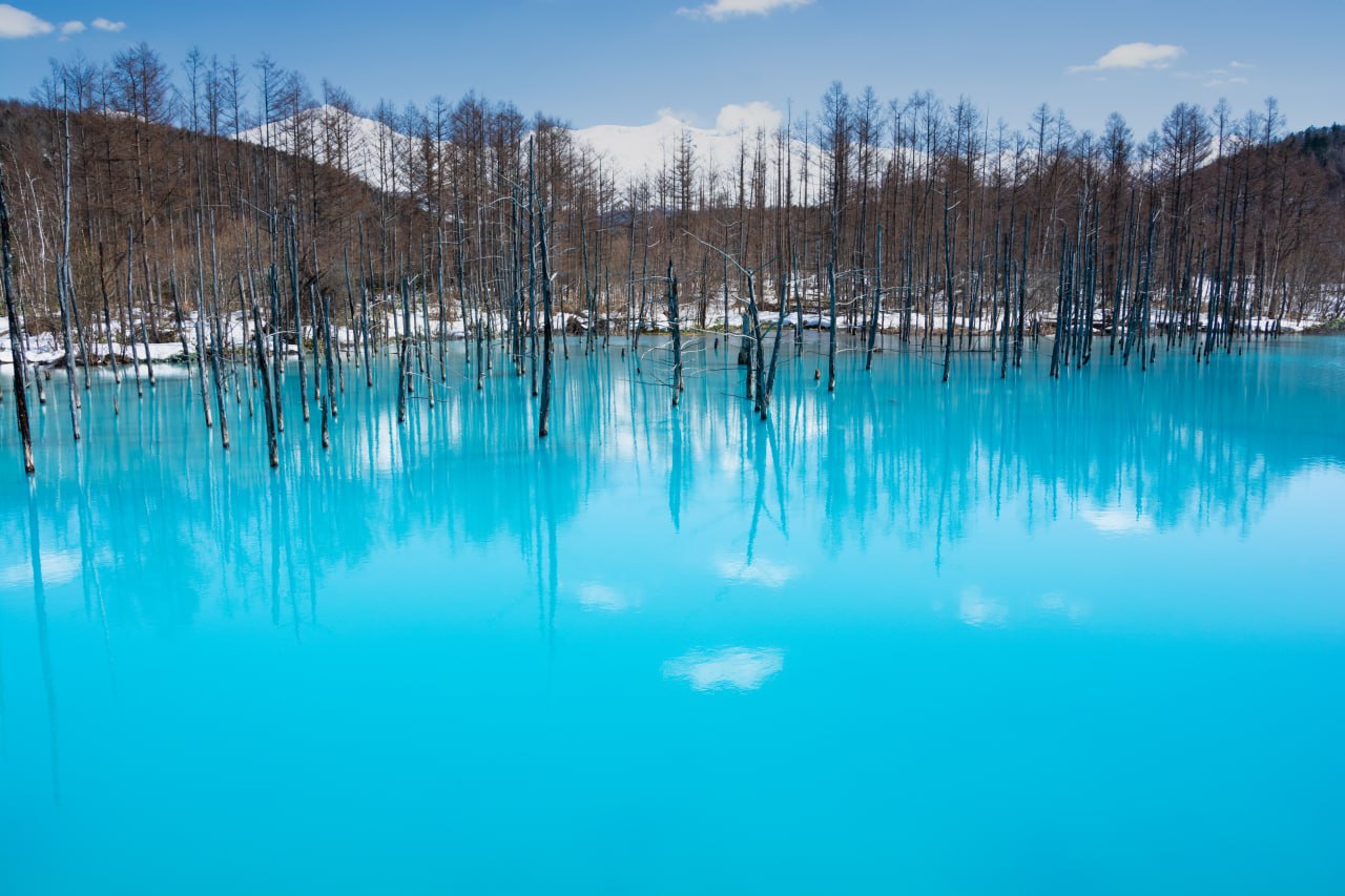 If you’re up for a short drive, the Blue Pond in Biei is well worth the trip. Fed by melting snow, the water becomes even more vivid in spring, creating a striking contrast with the softer surrounding landscape.